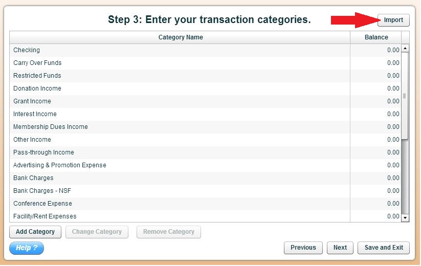 It is now time to set up your Transaction Categories. You will need your most current Chart of Accounts for this step: