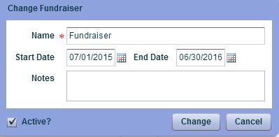 To edit a Fundraiser/Program already entered, select the “Pencil” icon next to the name of the Fundraiser/Program. Edit the information need and select the “Change” button: